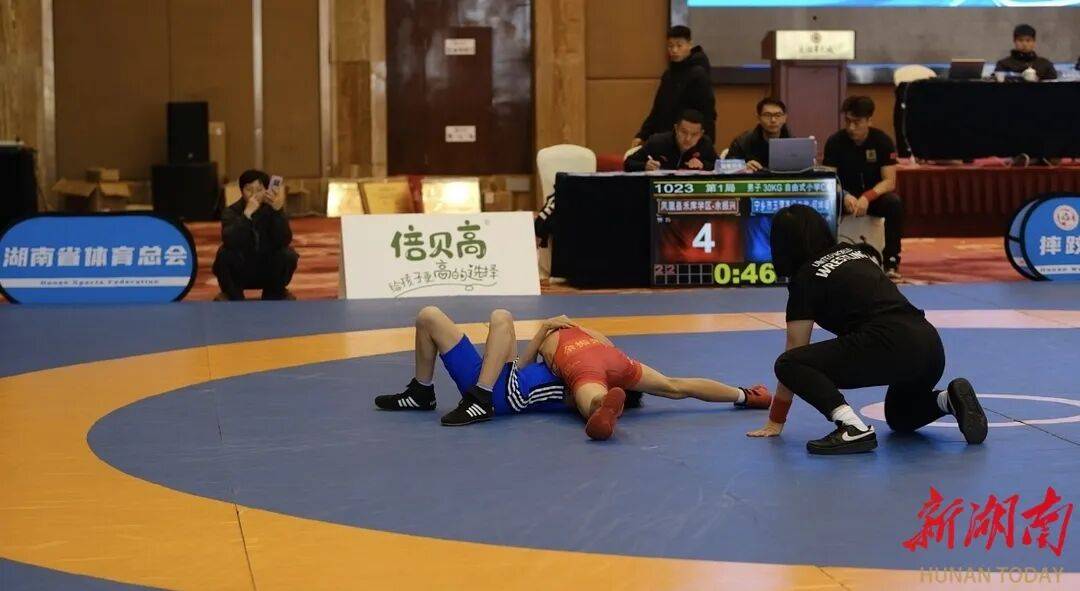 据悉,本次赛事是湖南省摔跤柔道项目的重要品牌赛事之一,旨在搭建全省青少年摔跤柔道运动交流展示平台,推动摔跤项目在基层校园的普及与发展。赛事吸引了来自全省14个市州的17支代表队、400余名运动员同台竞技,竞争尤为激烈。值得关注的是,凤凰县禾库学区摔跤队组建仅8个月,便先后两次在省级赛事中脱颖而出,成为赛场中极具辨识度的乡村强队。