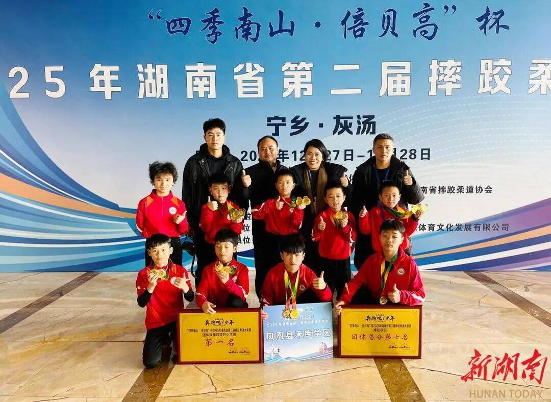 凤凰体育,凤凰体育直播,凤凰体育APP科教新报·新湖南客户端讯(通讯员 龙增莲 吴志德)12月27日至28日,“四季南山・倍贝高”杯2025年湖南省第二届摔跤柔道大奖赛在宁乡市落幕。凤凰县禾库学区9名小学生队员奋勇拼搏、驰骋赛场,一举斩获12金4银3铜共19枚奖牌,其原创集体赛团体操《苗跤战魂》更强势拿下小学组第一名。这是该学区在省级赛场的又一重大突破——此前同年10月在宁乡举行的“2025年湖南省第三届校园摔跤柔道比赛”中,该队伍已斩获1金1银3铜的亮眼成绩,以乡村校园队伍之姿成为省级赛场名副其实的“黑马”。