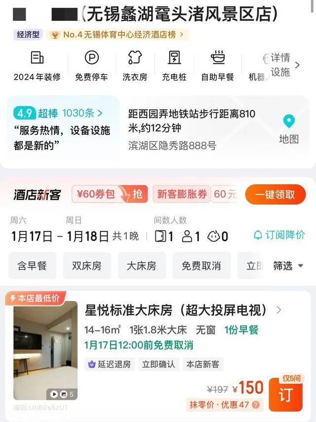 值得一提的是,参赛选手来自75个国家和地区,本地选手仅占8.6%,超过九成的外地跑者,为无锡带来了旺盛的文旅消费需求。然而,中签跑者的喜悦很快被“住不起”的焦虑冲淡,打开订房APP,部分酒店比赛前一晚的定价居然高得离谱。有人说:“现在大型的热门赛事都是这样,酒店直接把全国各地来的跑友当韭菜一样,肆无忌惮地坐地起价!”