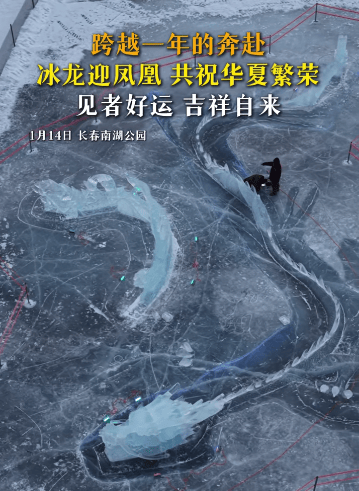 1月15日,45米冰龙“终遇”20米的凤凰,一对冰雪雕琢的神兽,在长春市南湖公园6号门旁以“龙凤呈祥”的绝美姿态惊艳亮相。