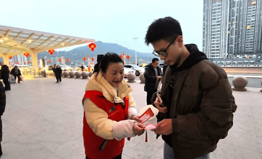 3月4日,在巴中东站设置前程寄语留声亭,让游子录下对未来的期许或对家人的祝福。在登高民俗活动当日巴中东站各车次检票前,用歌舞快闪形式送上祝福,并联合本地商家推出“前路能力补给包”。