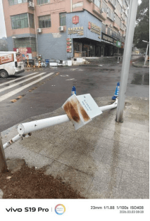 10、零陵区七里店街道办事处旁边中国石化加油站入口处有公安系统雪亮智能系统旗杆倒塌。