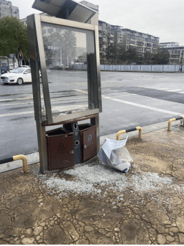 8、冷水滩区梅湾街道梅湾路68号中国人寿保险公司门口垃圾箱被撞坏(已处理);