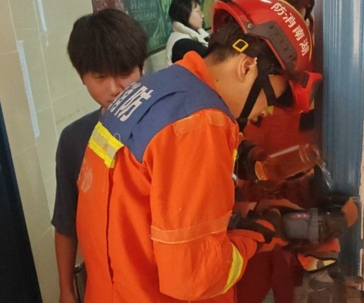 长沙经济技术开发区银河社区向阳路14号一学生手指被门缝,需要救助。接警后,星沙消防救援站立即赶赴现场处置。