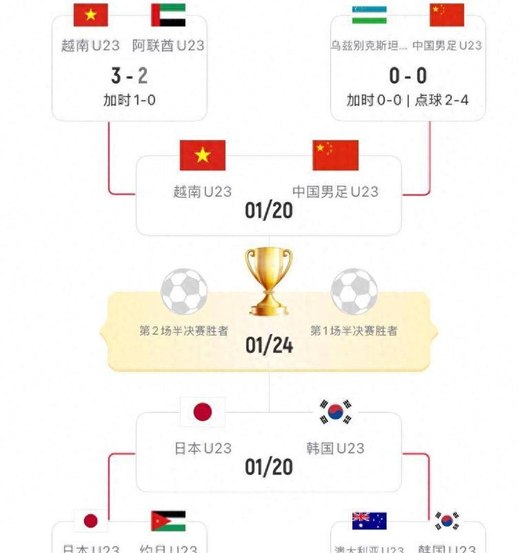 无论是中国队延续零封纪录,还是越南队攻破这座“移动长城”,这场在沙特夜晚进行的比赛,其意义都超越了单场胜负。 这是中国U23男足首次站上亚洲杯半决赛的舞台,距离创造历史仅一步之遥。 另一块场地上,日本与韩国的胜者正在决赛席位上等候。 对于中国球迷而言,这是一个需要熬夜守候的夜晚,CCTV5、咪咕视频、央视频等多个平台将从23:30开始直播这场比赛。返回搜狐,查看更多